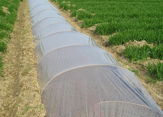 (2)降低了温室大棚内的空气湿度,由于消雾剂的作用,大棚膜的无滴性能大大增加,棚内空气中水份较快被消雾剂吸附、排除,空气湿度较普通无滴膜低10~12%;